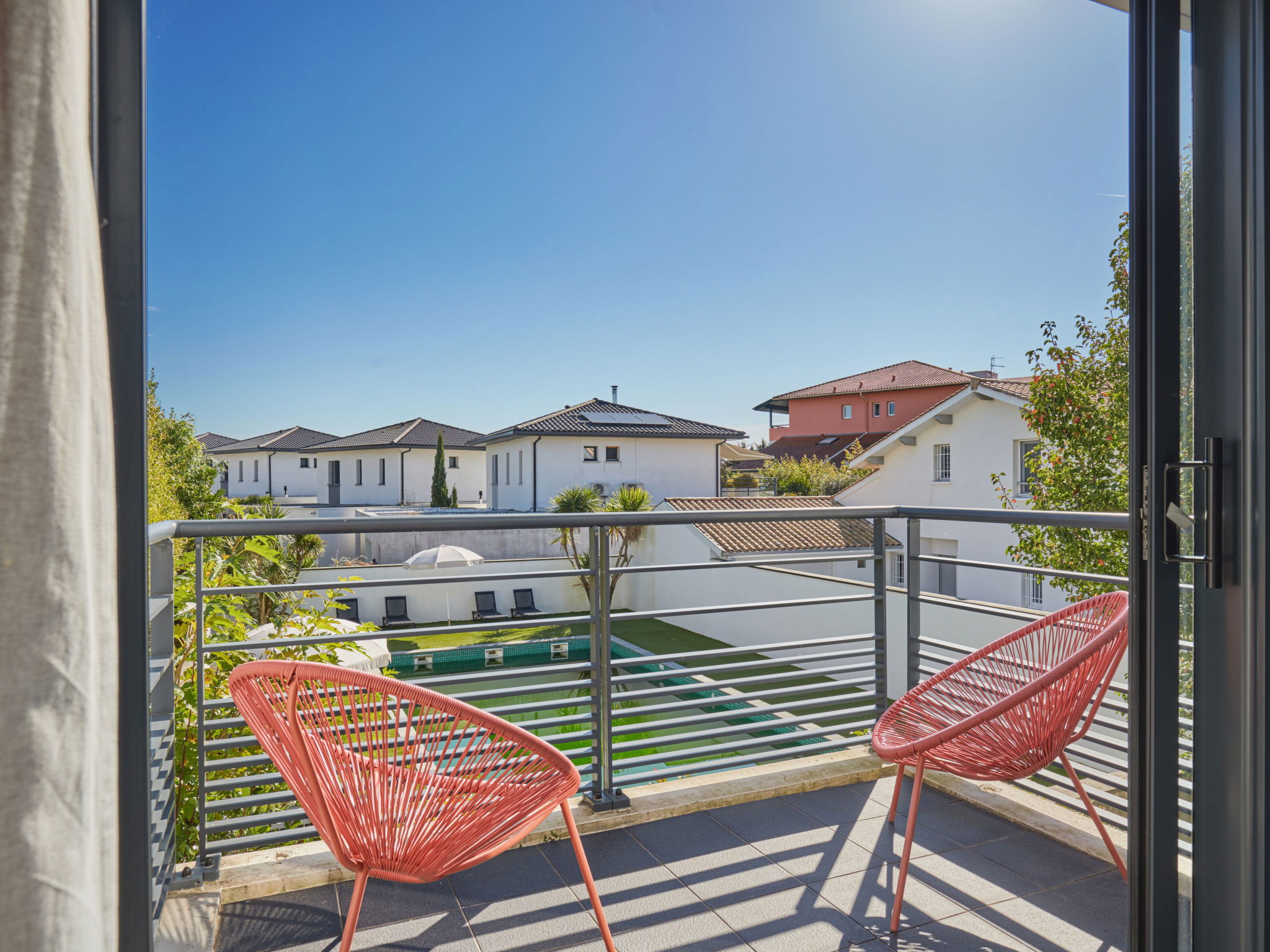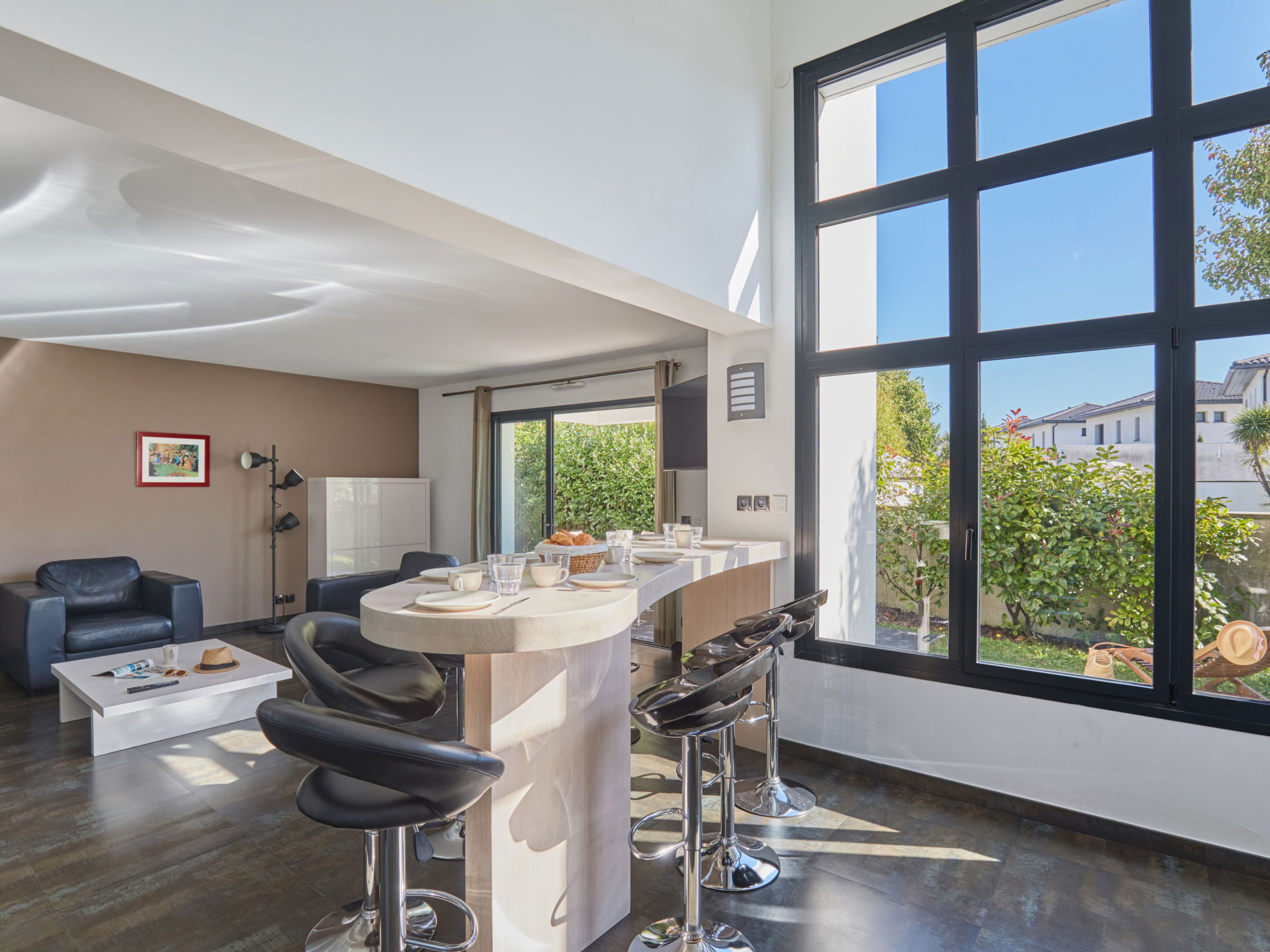 Résidence "Le Domaine d'Anadara". 9 maisons dans la résidence. À 3 km du centre de Biarritz, à 3.5 km du centre d'Anglet, dans un quartier résidentiel, à 700 m de la mer, à 700 m de la plage. En commun: terrain, jardin entretenu (pas clôturé) pelouse, piscine chauffée, cloturée (12 x 4 m, disponibilité saisonnière: 01.Mai. - 30.Sep. horaires d'ouverture de la piscine: 10:00-20:00) avec marches intérieures. Terrasse. Infrastructures de la résidence: réception. Magasins 700 m, arrêt de bus "Chambre d'amour" 900 m, gare ferroviaire "Biarritz" 6 km, plage de sable 700 m. Terrain de golf (18 trous) 2.5 km, ecole de surf 1.3 km. Attractions à proximité: parcours Golf l'Impératrice 9 trous 1.4 km, Surf 1.3 km, Halles des 5 Cantons 1 km, Bayonne 5.5 km, Biarritz 3.5 km, San-Sébastian 50 km. Région de randonnées: Promenade du littoral 1 km, La Rhune. Veuillez noter: La photo ne montre qu’un exemple de location de vacances. Toutes les maisons/appartements sont aménagés individuellement.