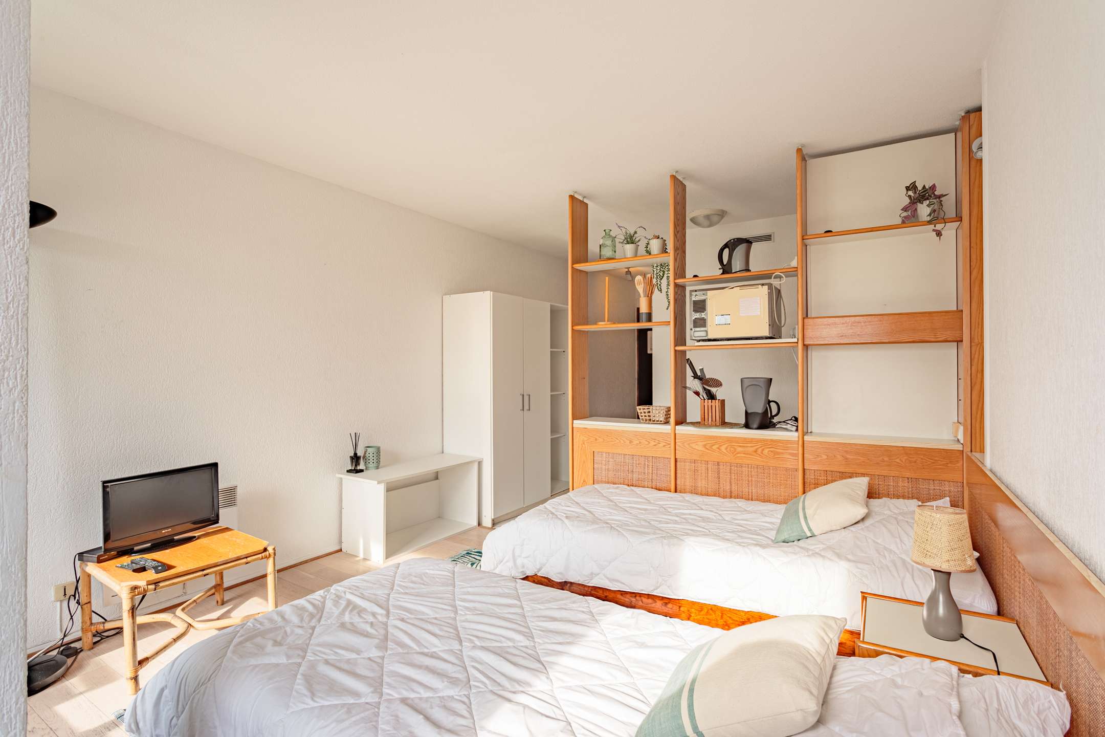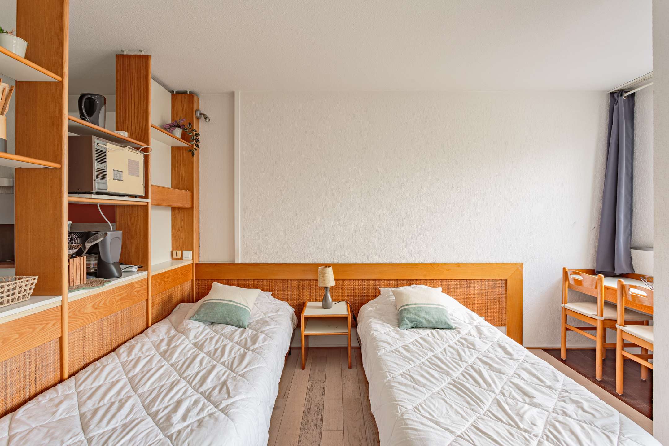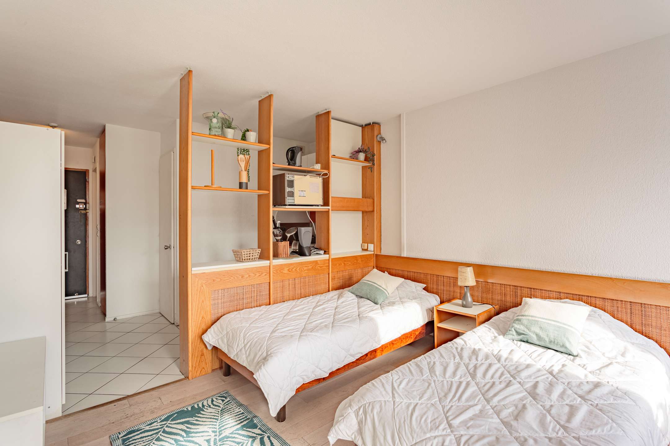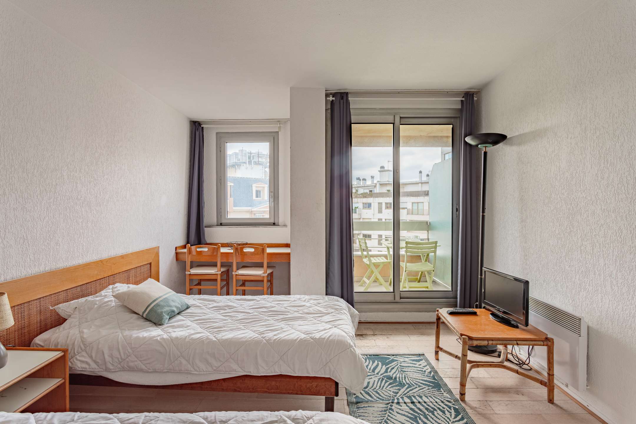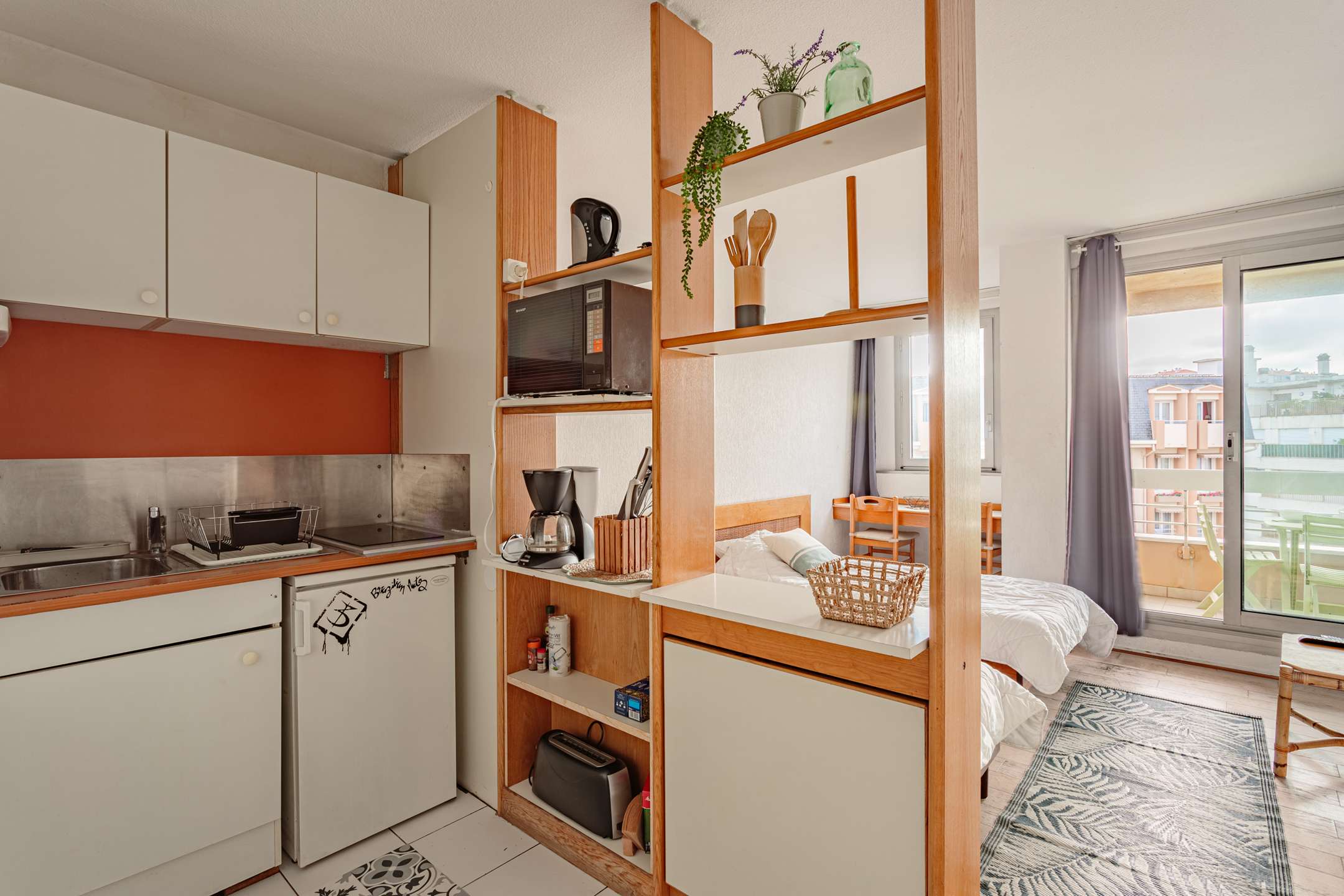 Il se compose d'une pièce de vie avec deux lits jumeaux (possibilité de les rapprocher ou de les séparer), donnant sur un balcon, d'une cuisine ouverte et d'une salle de bain. L'appartement vous permet des vacances tout à pied grâce à son emplacement hyper centre et son accès direct à la Grande Plage tout en vous offrant la possibilité de vous relaxer à la piscine de la résidence.
