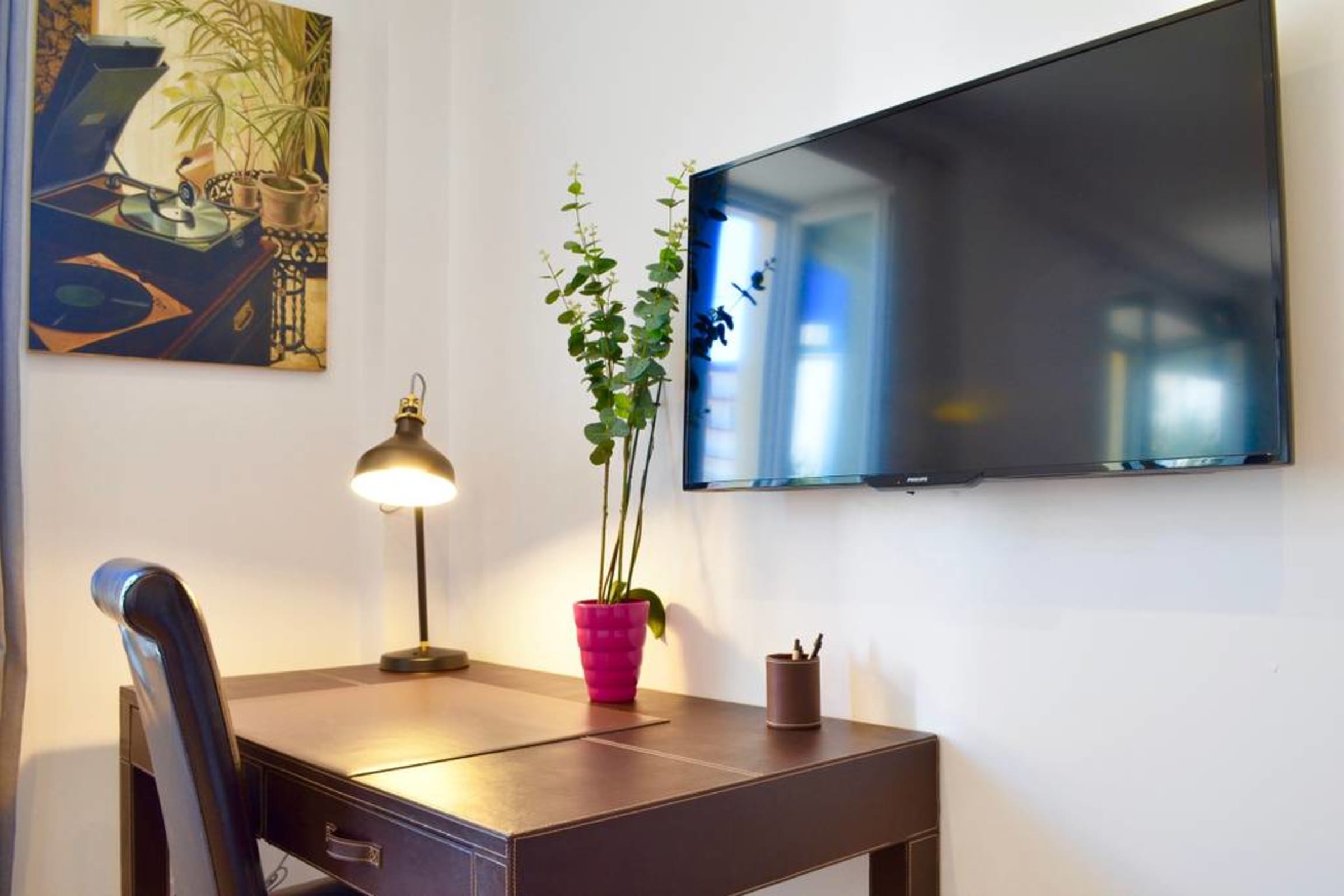 Si vous avez besoin de travailler pendant votre séjour, un espace bureau est mis à votre disposition. Vous trouverez également un grand placard de rangement pour vos effets personnels, afin de garder le studio bien organisé et dégagé.