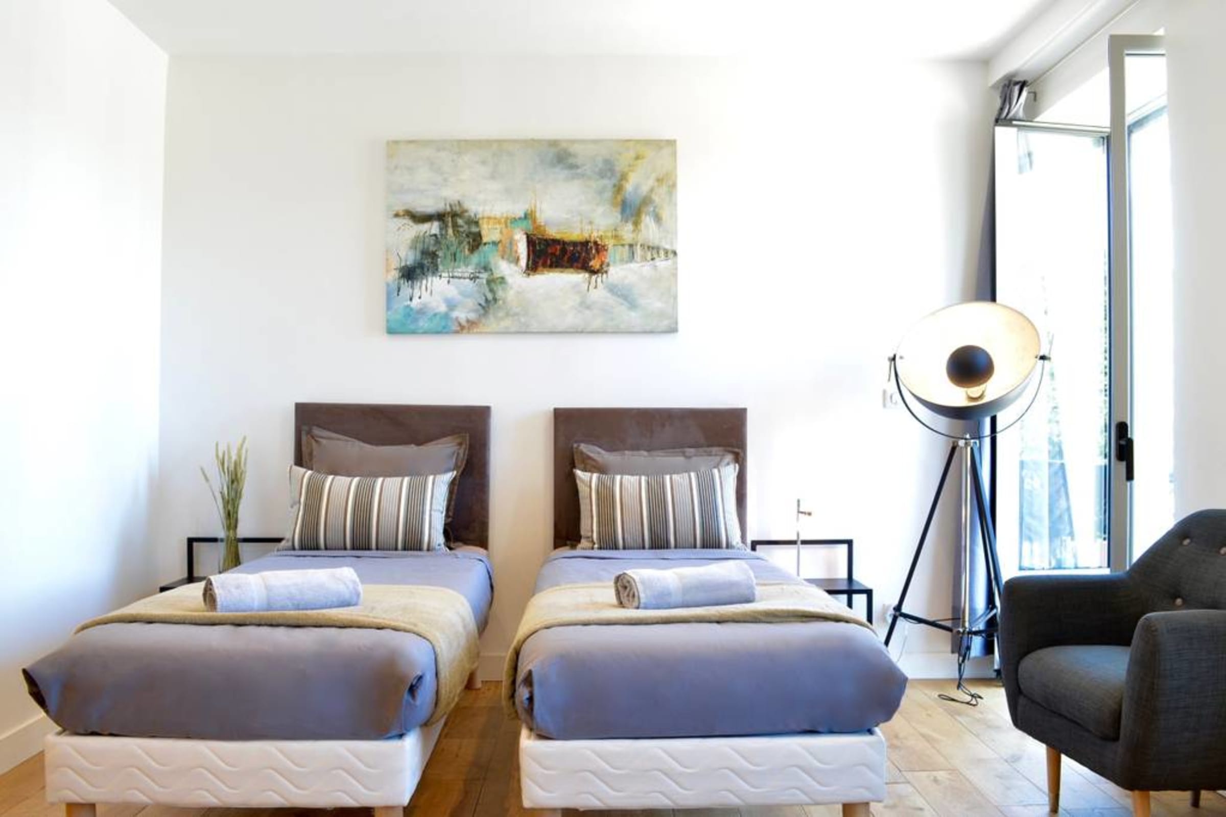 - Draps et serviettes : Les draps sont fournis et les lits sont faits pour votre arrivée. Des serviettes de bain et des tapis de bain sont également inclus. Tous ces articles sont nettoyés et désinfectés par notre blanchisserie professionnelle, Pressing.