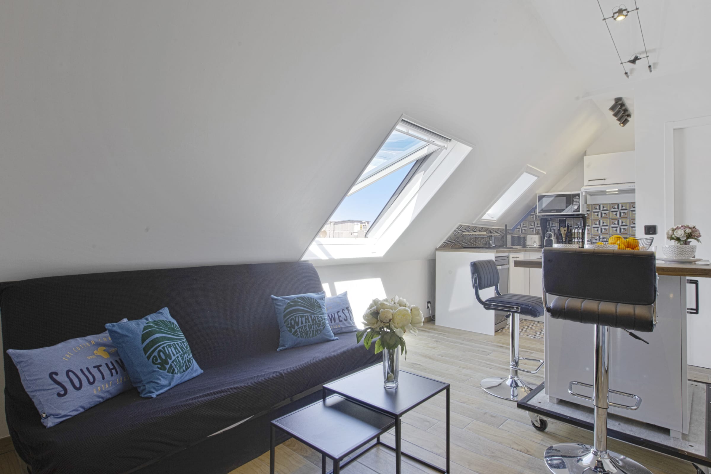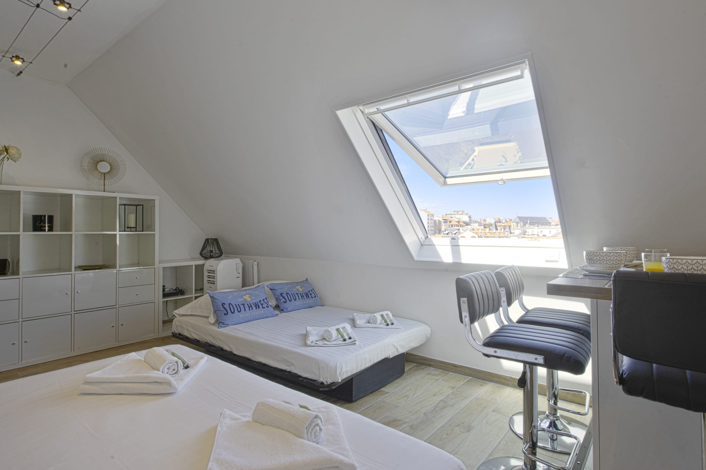 Niché au cœur de Biarritz, ce studio vous plonge dans l'ambiance vibrante et élégante de la ville. Depuis le sixième étage, accessible par ascenseur, admirez une vue imprenable sur les toits et l'océan.