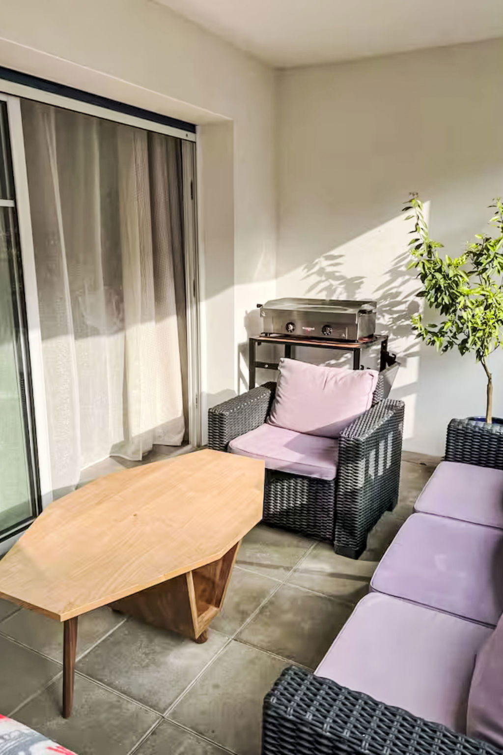 Appartement de 2 pièces 47 m2, au rez-de-chaussée. Aménagement agréable: séjour/salle à manger avec TV (écran plat). Sortie sur le balcon. 1 chambre avec 1 lit double (140 cm, longueur 190 cm). Coin cuisine (four, lave-vaisselle, 3 plaques vitrocéramiques, grille-pain, bouilloire électrique, micro-ondes, congélateur, cafetière électrique, Capsules pour machine à café (Nespresso) (NON INCLUSES)). Douche/WC. Chauffage électrique. Balcon 7 m2, situation ouest. Mobilier de balcon. Belle vue sur les montagnes. A disposition: lave-linge, fer à repasser, sèche-cheveux. Internet (Connexion WIFI, gratuit). Place de parking (couvert, 1 Voiture). Veuillez noter: logement non-fumeur. Détecteur de fumée. Annonce d'un particulier (art 155, IV du CGI). 641250023539B